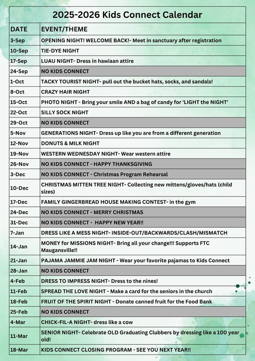 Kids CONNECT(aka Awana) offers a welcoming, supportive environment where kids learn how a personal relationship with Christ affects their everyday lives. God has shared with us His story (history) and invites us to be a part of that story. He reveals who He is and the truth about our relationship with Him in the Bible.